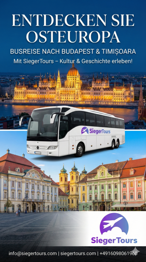 Siegertours.com steht für komfortable und zuverlässige Busreisen in Deutschland und ganz Europa. Ob Tagesausflug, Städte-Trip oder Gruppenreise – wir planen klar und reisen sicher. Dabei legen wir Wert auf Service, Pünktlichkeit und Komfort. Zusätzlich bieten wir Ihnen auch Reiseoptionen für Ägypten an. Diese finden Sie über unser Partnerangebot Sieger Reisen unter sieger-reisen.com. Dort erwarten Sie ausgewählte Hotels, Transfers, Ausflüge und Rundreisen. So erhalten Sie Reisen in Europa und Erlebnisse in Ägypten aus einer Hand. Siegertours.com – unterwegs mit Vertrauen. In Kooperation mit DF Tour GmbH